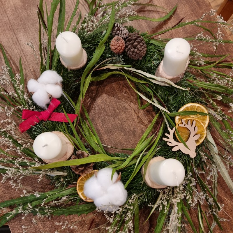 Venez vous plonger dans l'ambiance des fêtes en créant votre couronne de l'avent.